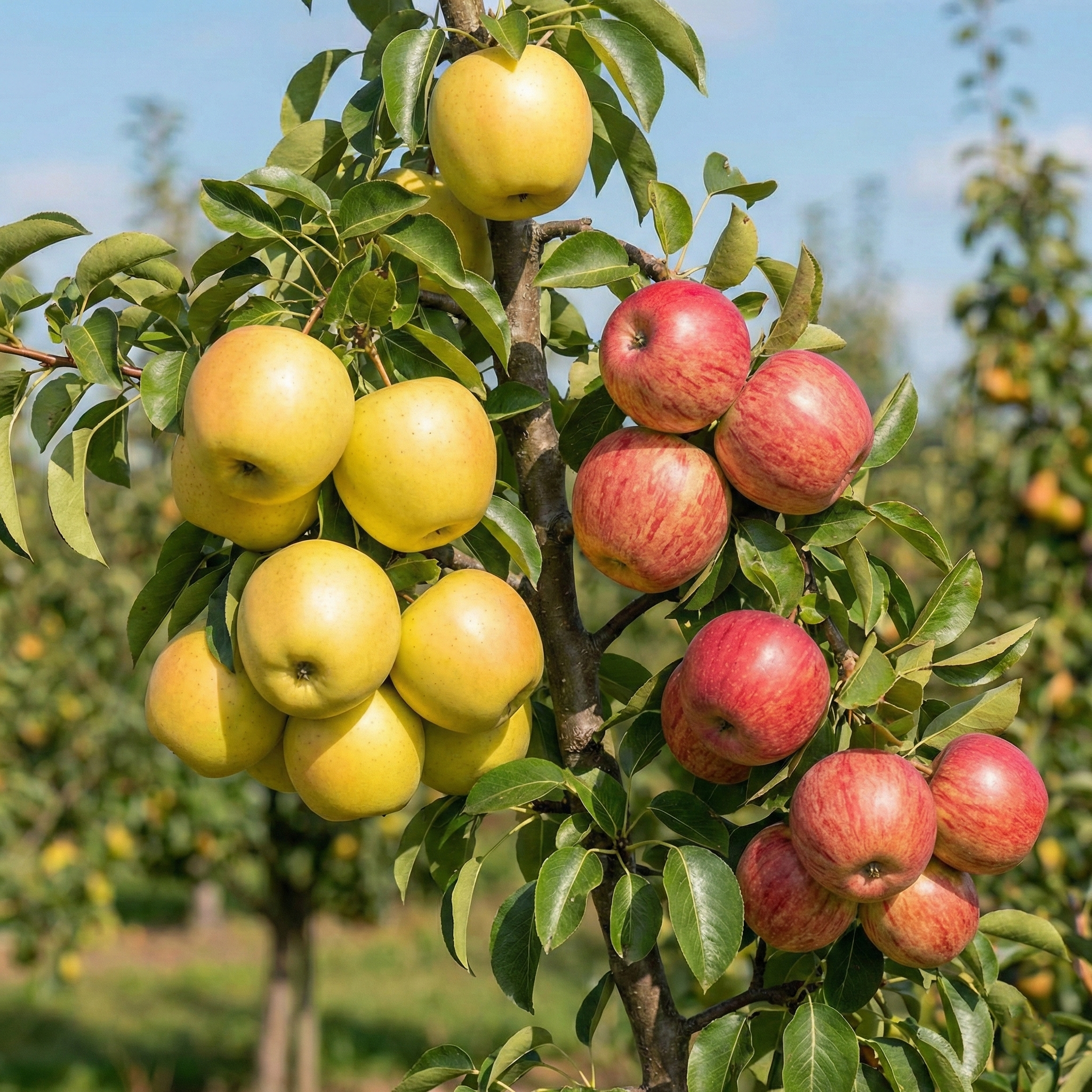 ✅ Rodzaj: drzewko owocowe typu DUO – jabłoń Golden Delicious + jabłoń Idared na jednym pniu