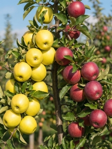 Drzewko Duo Golden Delicious & Idared charakteryzuje się regularnym i obfitym plonowaniem, dobrą odpornością na mróz oraz umiarkowanymi wymaganiami uprawowymi. To doskonały wybór do przydomowych ogrodów i działek, pozwalający zaoszczędzić miejsce, a jednocześnie zapewniający bogaty zbiór smacznych i aromatycznych jabłek przez całe lato i jesień.