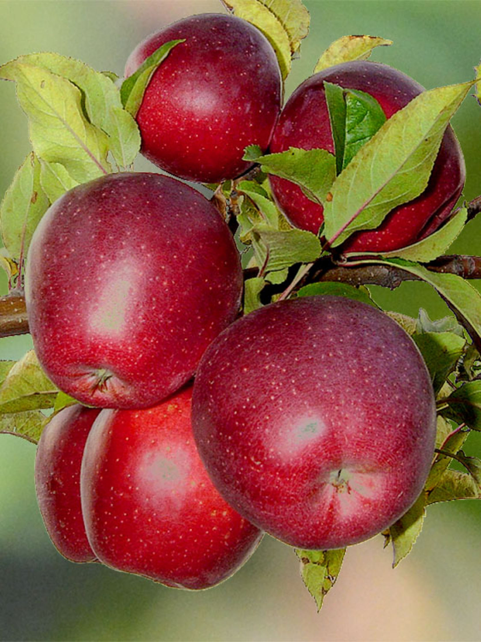 ✅Owoce: duże, kulisto-stożkowe, pokryte karminowo-czerwonym rozmytym rumieńcem
