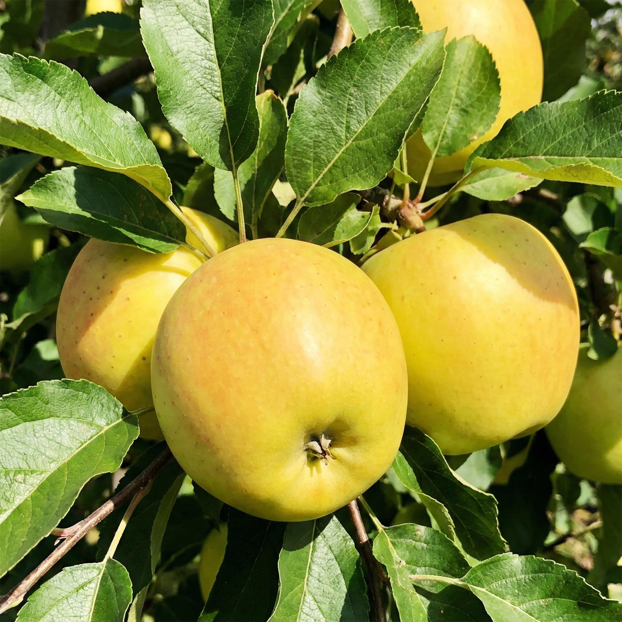 Jabłoń Golden Delicious to jedna z najpopularniejszych odmian deserowych na świecie. Pochodzi z USA, a dziś uprawiana jest w wielu krajach, również w Polsce. Drzewo rośnie średnio silnie, wcześnie zaczyna owocować i daje obfite plony. Owoce są średnie lub duże, kulisto-stożkowate, o cienkiej, gładkiej skórce – początkowo zielonkawej, później złocistożółtej. Miąższ ma barwę kremowożółtą, jest soczysty, kruchy, słodki i aromatyczny, dzięki czemu świetnie nadaje się do jedzenia na świeżo, a także do deserów, ciast czy soków. Jabłka dojrzewają we wrześniu–październiku i mogą być przechowywane do wiosny. Odmiana najlepiej rośnie w ciepłych, słonecznych i osłoniętych stanowiskach, na żyznych i umiarkowanie wilgotnych glebach. Jest częściowo samopylna, ale plonowanie poprawiają zapylacze takie jak ‘Idared’, ‘Szampion’ czy ‘Gala’. Wymaga regularnego cięcia, gdyż jej korona łatwo się zagęszcza. Minusem jest wrażliwość na parch i mączniaka oraz średnia odporność na mróz, dlatego wymaga starannej ochrony i pielęgnacji. To odmiana ceniona za wyjątkowy smak, atrakcyjny wygląd owoców i bardzo dobrą zdolność przechowywania.