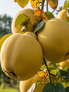 Pigwa wielkoowocowa ‘Mamut’ (Cydonia oblonga ‘Mamut’) to wyjątkowo atrakcyjna odmiana, ceniona za duże, efektowne owoce i intensywny aromat. Drzewo dorasta do około 3–4 m, ma ładny, regularny pokrój i wiosną obsypuje się dużymi, biało-różowymi kwiatami, dzięki czemu stanowi ozdobę każdego ogrodu. Owoce są bardzo duże, żółte, gruszkowate, o twardym, kwaśnym, ale niezwykle aromatycznym miąższu, idealnym do przetworów – konfitur, dżemów, nalewek czy soków. Odmiana jest samopylna, łatwa w uprawie i stosunkowo odporna na mróz oraz choroby. Preferuje stanowiska słoneczne i gleby żyzne, przepuszczalne. Owoce ‘Mamuta’ zawierają dużo pektyn i witaminy C, mają właściwości prozdrowotne i świetnie się przechowują. To doskonały wybór dla osób szukających rośliny zarówno użytkowej, jak i ozdobnej, dającej obfite, aromatyczne plony.
