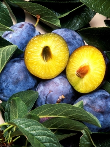 Śliwa Herman to bardzo wczesna i popularna odmiana deserowa pochodząca ze Szwecji, ceniona za szybkie wejście w owocowanie oraz wysoką i regularną plenność. Drzewo rośnie umiarkowanie silnie, tworząc zwartą, regularną koronę, łatwą w prowadzeniu i dobrze reagującą na cięcie. Odmiana jest mało wymagająca i dobrze sprawdza się zarówno w sadach towarowych, jak i w ogrodach przydomowych. Owoce śliwy Herman są średniej wielkości lub duże, o owalnym, lekko wydłużonym kształcie. Skórka ma barwę ciemnofioletową lub granatową, z intensywnym, woskowym nalotem. Miąższ jest żółty, bardzo soczysty, delikatny i słodki, z lekką nutą kwaskowości, dobrze oddzielający się od pestki. Owoce doskonale nadają się do spożycia na świeżo, a także do przetworów, kompotów i wypieków. Odmiana dojrzewa bardzo wcześnie, zwykle już w drugiej połowie lipca. Owoce nie nadają się do długiego przechowywania, ale wyróżniają się dobrym smakiem i atrakcyjnym wyglądem. Herman charakteryzuje się dobrą odpornością na mróz oraz choroby, a także dużą tolerancją na zmienne warunki klimatyczne, co czyni ją jedną z najlepszych wczesnych odmian śliw w uprawie.
