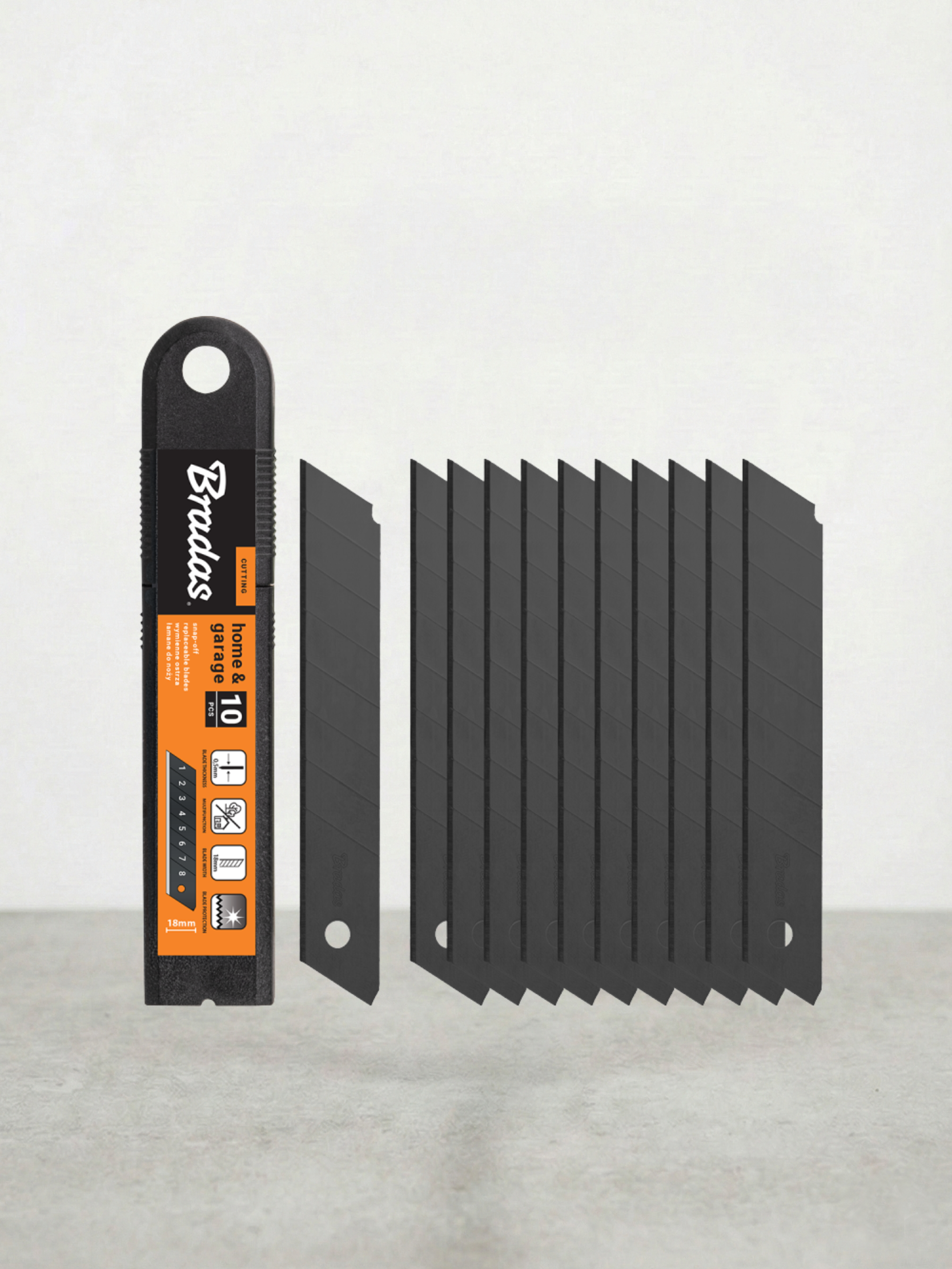 Wymienne ostrza łamane 10 mm 10 szt. BRADAS BLACK BRADAS to praktyczny i niezawodny zestaw, który powinien znaleźć się w każdym domu, warsztacie i podczas prac remontowych. Dzięki precyzyjnej konstrukcji ostrza umożliwiają szybkie, dokładne i bezpieczne cięcie tapet, folii, papieru oraz innych cienkich materiałów wykończeniowych. Zestaw idealnie sprawdza się jako uzupełnienie noży do tapet i narzędzi tnących, zapewniając ciągłą gotowość do pracy.