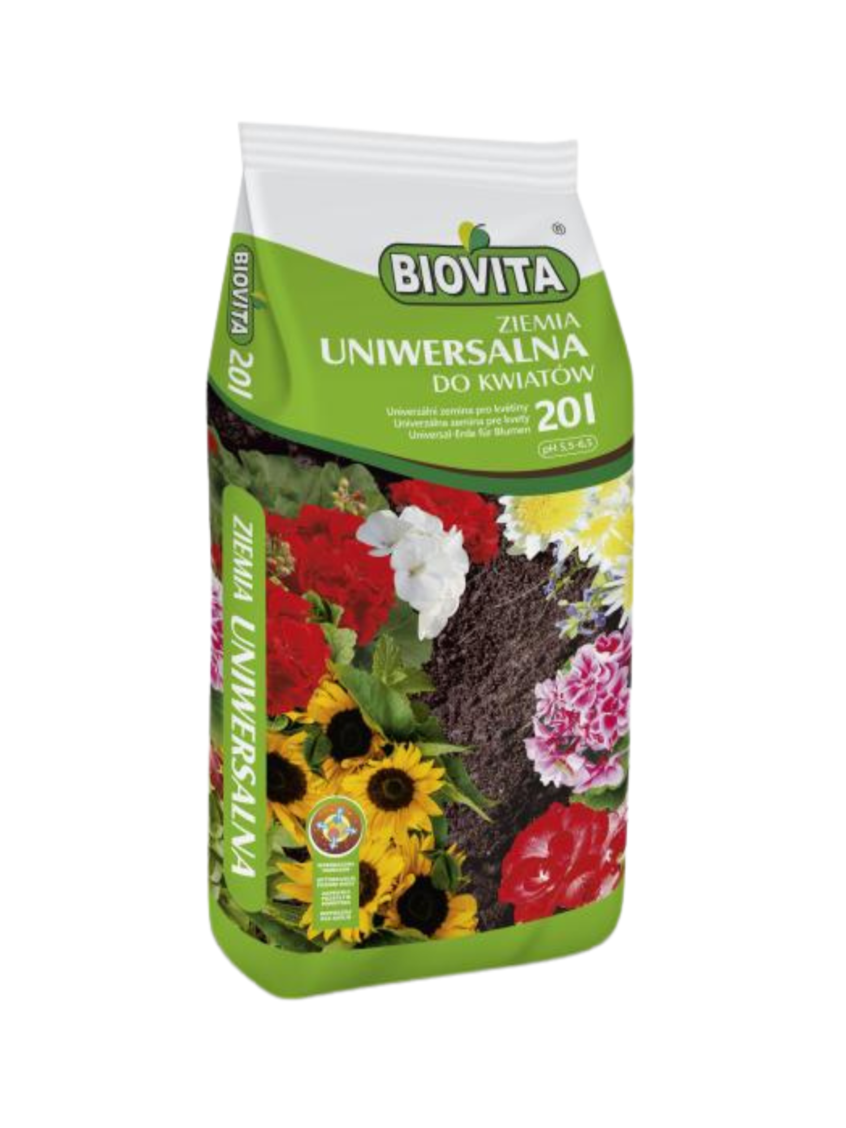 Ziemia uniwersalna 20L BIO BIOVITA do kwiatów to wysokiej jakości, naturalne podłoże przeznaczone do uprawy roślin ozdobnych w donicach, skrzyniach balkonowych oraz w ogrodach przydomowych i działkowych. Produkt został opracowany z myślą o wymaganiach kwiatów doniczkowych i rabatowych, zapewniając im optymalne warunki do zdrowego wzrostu, bujnego kwitnienia oraz intensywnego rozwoju.